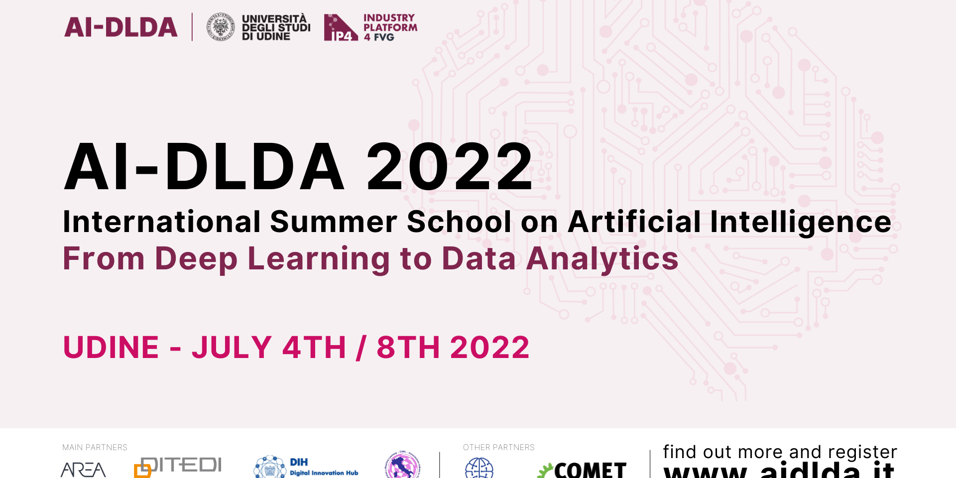 Dopo due edizioni online, torna finalmente in presenza AI-DLDA 2022 – From Deep Learning to Data Analytics, l’International Summer School sull’Intelligenza Artificiale organizzata dall’Università di Udine insieme a IP4FVG, che vede DITEDI tra i Main Partner.