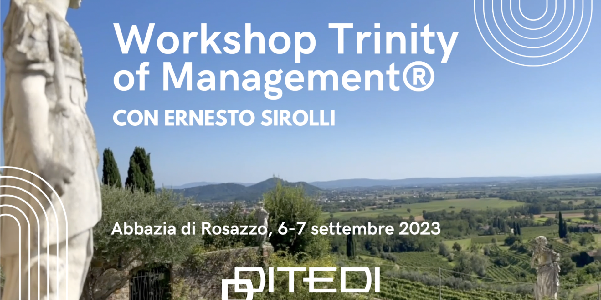 Il workshop “Trinity of Management® Deep Dive e Blast” si è svolto nell’incantevole cornice dell’Abbazia di Rosazzo, il 6 e 7 settembre 2023. L’evento è stato organizzato da Ditedi in collaborazione con il Sirolli Institute, e abbiamo avuto l’onore di ospitare uno speaker e professionista d’eccezione: Ernesto Sirolli.
