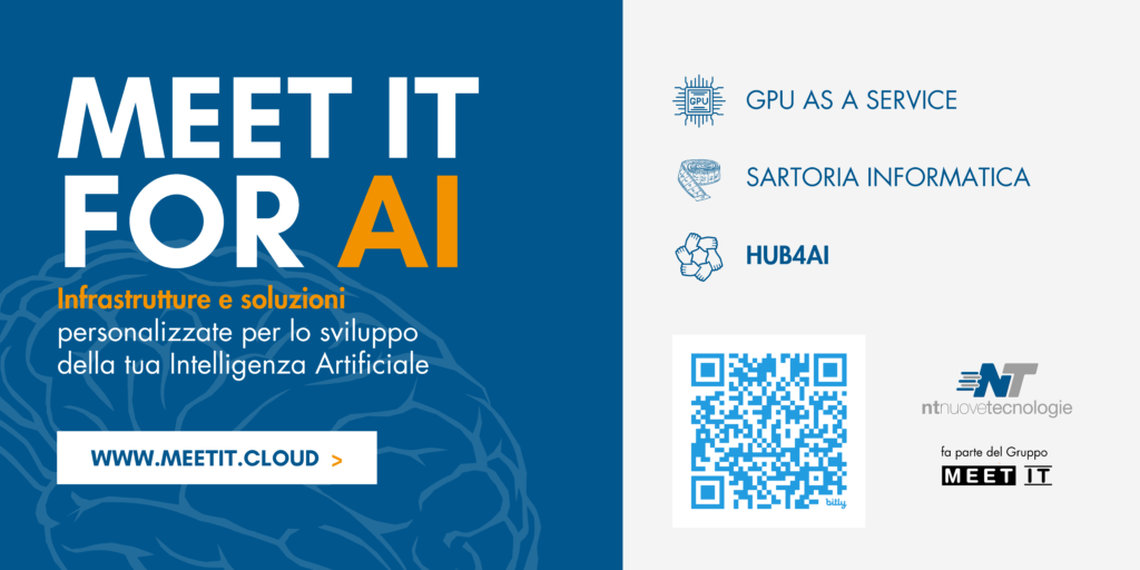NT Nuove Tecnologie è un’azienda udinese del Gruppo MEET IT, che grazie alla sua esperienza quasi trentennale nel settore IT offre ad aziende e PA una guida esperta verso possibili use case, tecnologie e soluzioni di Private AI oltre a fornire le sue infrastrutture IT su misura e a servizio (come ad esempio Superserver e GPU as a Service).