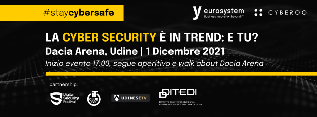 Per accompagnare le aziende nell’identificazione del processo di Cyber Security più adatto alla propria realtà, il Gruppo Eurosystem, in collaborazione con il suo partner tecnologico Cyberoo, organizza un incontro in cui verranno presentate le principali minacce informatiche (malware, ransomware, 0day & co) e offerti spunti e considerazioni per proteggersi dal Cyber Crime.