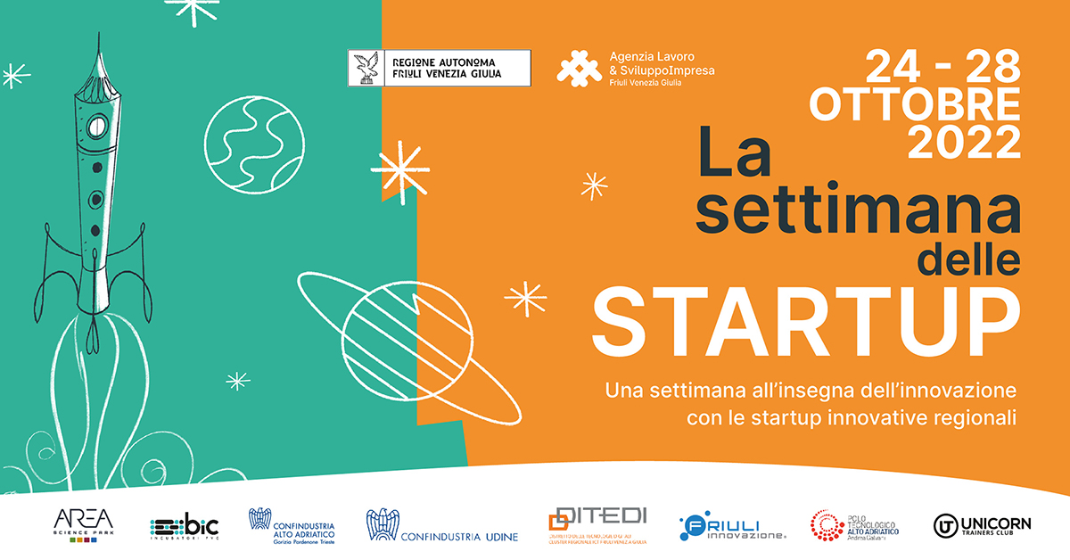 Agenzia Lavoro & SviluppoImpresa, insieme a DITEDI, Area Science Park, BIC Incubatori FVG, Confindustria Alto Adriatico, Confindustria Udine, Friuli Innovazione, Polo Tecnologico Alto Adriatico Pordenone, Unicorn Trainers Club, sta organizzando l’edizione 2022 de “La settimana delle startup” in programma dal 24 al 28 ottobre.