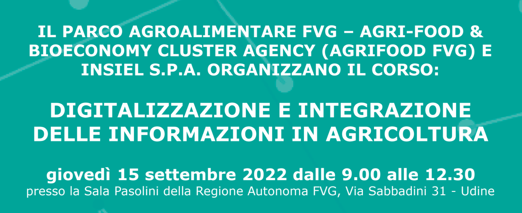 DITEDI segnala il nuovo incontro del progetto CREDAS, “DIGITALIZZAZIONE E INTEGRAZIONE DELLE INFORMAZIONI IN AGRICOLTURA”, che AgriFoodFVG organizza in collaborazione con Insiel S.p.A., società ICT in house della Regione Autonoma Friuli Venezia Giulia, per: