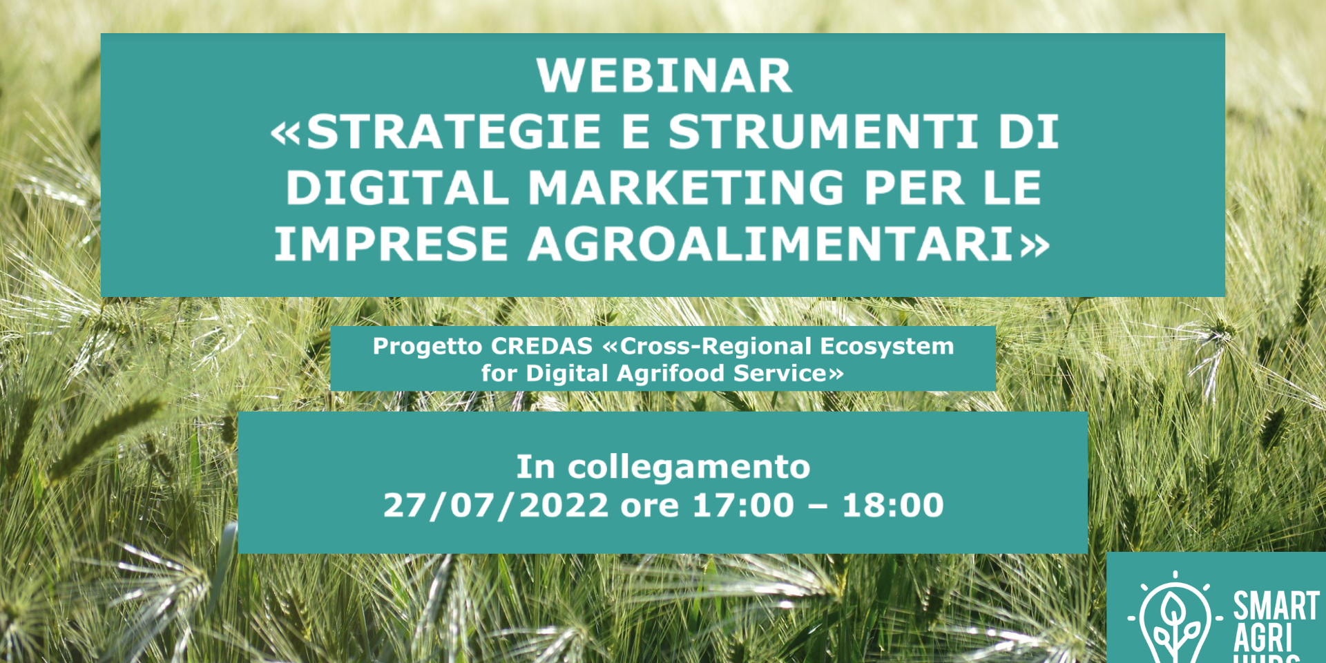 PARCO AGROALIMENTARE FVG – AGRI-FOOD & BIOECONOMY CLUSTER AGENCY s.c.a r.l., insieme al partner Associazione Clust-ER Agroalimentare (Emilia-Romagna), nell’ambito del progetto CREDAS “Cross-Regional Ecosystem for Digital Agrifood Service”, ha organizzato un webinar su “Strategie e strumenti di digital marketing per le imprese agroalimentari“.