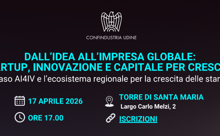 “Anche in Friuli Venezia Giulia possono nascere gli unicorni” venerdì 17 aprile 2026, ore 17.00 Confindustria Udine, Torre di Santa Maria Le startup rappresentano un motore fondamentale di innovazione e competitività dei sistemi produttivi. Anche in Friuli Venezia Giulia sono presenti realtà ad alto contenuto tecnologico con potenziale globale, la